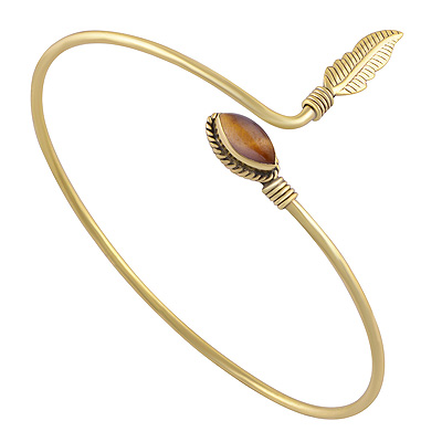 Home | Fashion Bangles | Brass Gemstone Bangles | Beautiful Handcrafted Leaf Tiger's Eye Marquise Shape Solid Brass Bangle