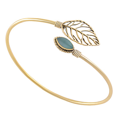 Home | Fashion Bangles | Brass Gemstone Bangles | Gorgeous Leaf Work Around Aqua Chalcedony Marquise Shape Solid Brass Bangle