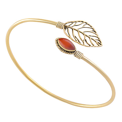 Home | Fashion Bangles | Brass Gemstone Bangles | Gorgeous Leaf Work Around Carnelian Marquise Shape Solid Brass Bangle