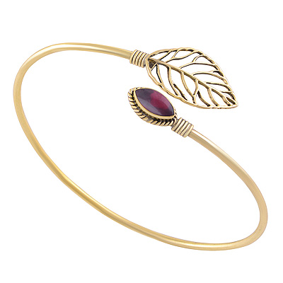 Home | Fashion Bangles | Brass Gemstone Bangles | Gorgeous Leaf Work Around Garnet Marquise Shape Solid Brass Bangle