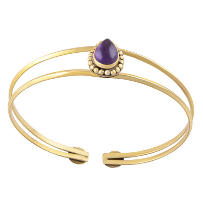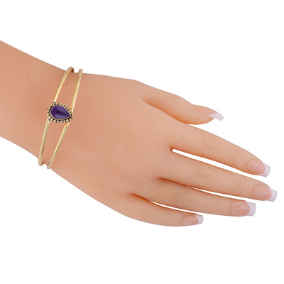 Home | Fashion Bangles | Brass Gemstone Bangles | Classic Rawa Work Around Amethyst Pear Shape Solid Brass Bangle