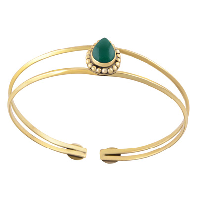 Home | Fashion Bangles | Brass Gemstone Bangles | Classic Rawa Work Around Green Onyx Pear Shape Solid Brass Bangle