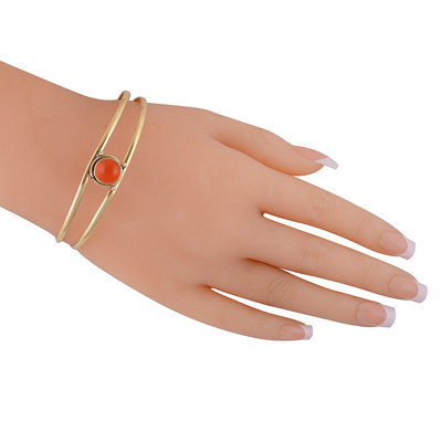 Home | Fashion Bangles | Brass Gemstone Bangles | Plain Wire Around Carnelian Round Shape Solid Brass Bangle