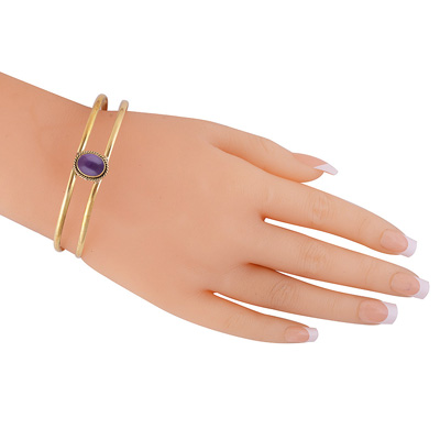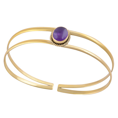 Home | Fashion Bangles | Brass Gemstone Bangles | Authentic Wire Work Around Amethyst Oval Shape Solid Brass Bangle