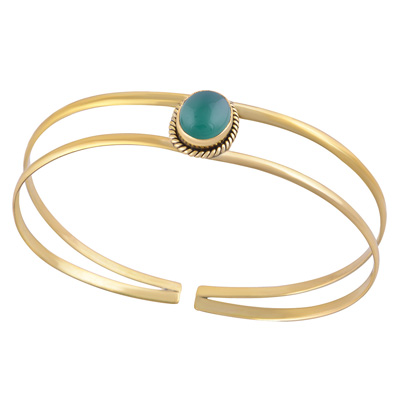 Home | Fashion Bangles | Brass Gemstone Bangles | Authentic Wire Work Around Green Onyx Oval Shape Solid Brass Bangle