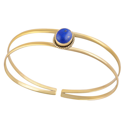 Home | Fashion Bangles | Brass Gemstone Bangles | Authentic Wire Work Around Lapis Oval Shape Solid Brass Bangle
