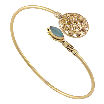 Home | Fashion Bangles | Brass Gemstone Bangles | Gorgeous Rawa Work Flower Pattern Around Aqua Chalcedony Marquise Shape Solid Brass Bangles