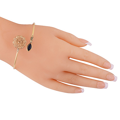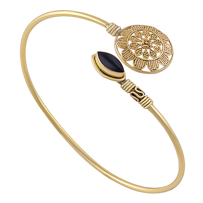 Home | Fashion Bangles | Brass Gemstone Bangles | Gorgeous Rawa Work Flower Pattern Around Black Onyx Marquise Shape Solid Brass Bangles