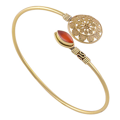 Home | Fashion Bangles | Brass Gemstone Bangles | Gorgeous Rawa Work Flower Pattern Around Carnelian Marquise Shape Solid Brass Bangles