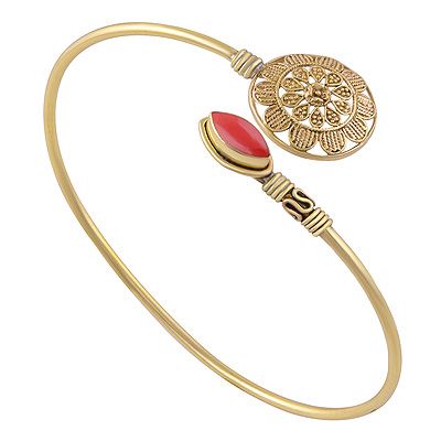 Home | Fashion Bangles | Brass Gemstone Bangles | Gorgeous Rawa Work Flower Pattern Around Coral Marquise Shape Solid Brass Bangles