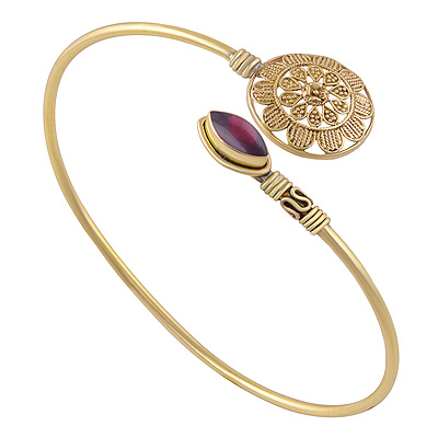 Home | Fashion Bangles | Brass Gemstone Bangles | Gorgeous Rawa Work Flower Pattern Around Garnet Marquise Shape Solid Brass Bangles