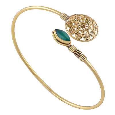 Home | Fashion Bangles | Brass Gemstone Bangles | Gorgeous Rawa Work Flower Pattern Around Green Onyx Marquise Shape Solid Brass Bangles