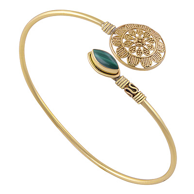 Home | Fashion Bangles | Brass Gemstone Bangles | Gorgeous Rawa Work Flower Pattern Around Malachite Marquise Shape Solid Brass Bangles