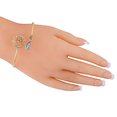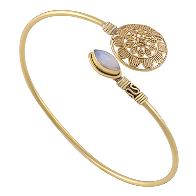 Home | Fashion Bangles | Brass Gemstone Bangles | Gorgeous Rawa Work Flower Pattern Around Rainbow Moonstone Marquise Shape Solid Brass Bangles