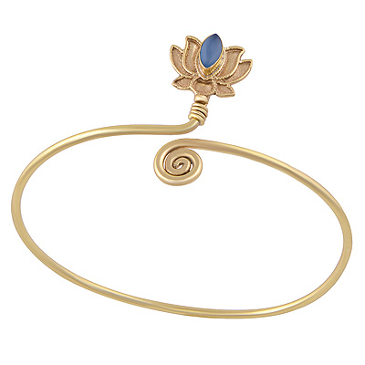 Home | Fashion Bangles | Brass Gemstone Bangles | Stunning Lotus Design Around Gemstone Blue Chalcedony Marquise Shape Solid Brass Bangles