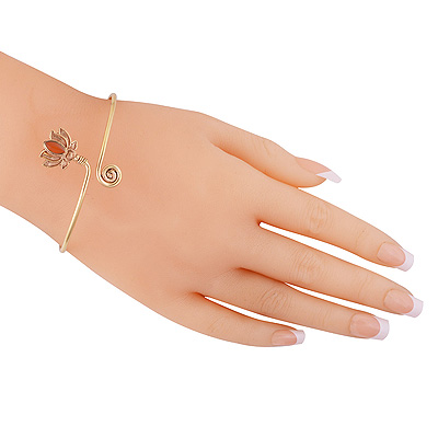 Home | Fashion Bangles | Brass Gemstone Bangles | Stunning Lotus Design Around Gemstone Carnelian Marquise Shape Solid Brass Bangles