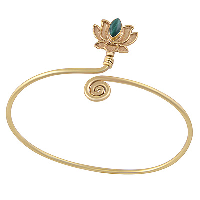 Home | Fashion Bangles | Brass Gemstone Bangles | Stunning Lotus Design Around Gemstone Malachite Marquise Shape Solid Brass Bangles