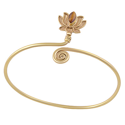 Home | Fashion Bangles | Brass Gemstone Bangles | Stunning Lotus Design Around Gemstone Tiger's Eye Marquise Shape Solid Brass Bangles