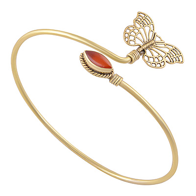 Home | Fashion Bangles | Brass Gemstone Bangles | Alluring Butterfly Design Pattern Around Carnelian Marquise Shape Solid Brass Bangles