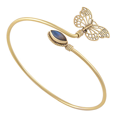 Home | Fashion Bangles | Brass Gemstone Bangles | Alluring Butterfly Design Pattern Around Labradorite Marquise Shape Solid Brass Bangles