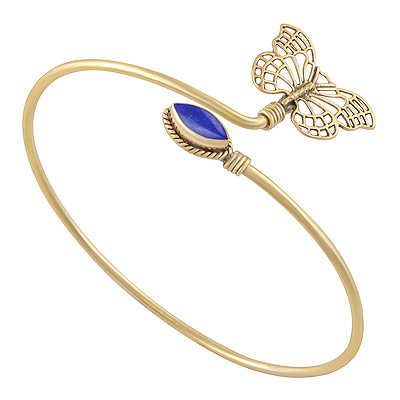 Home | Fashion Bangles | Brass Gemstone Bangles | Alluring Butterfly Design Pattern Around Lapis Marquise Shape Solid Brass Bangles