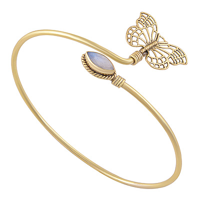 Home | Fashion Bangles | Brass Gemstone Bangles | Alluring Butterfly Design Pattern Around Rainbow Moonstone Marquise Shape Solid Brass Bangles