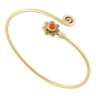 Home | Fashion Bangles | Brass Gemstone Bangles | Beautiful Twisted Wire Work Around Carnelian Round Shape Solid Brass Bangle