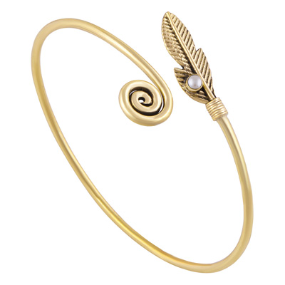 Home | Fashion Bangles | Brass Gemstone Bangles | Stunning Textured Leaf Around Pearl Round Shape Solid Brass Bangle