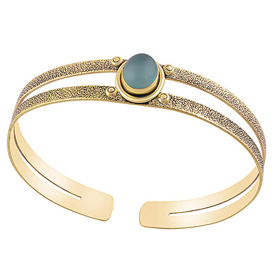 Home | Fashion Bangles | Brass Gemstone Bangles | Stunning Oxidised Texture Around Aqua Chalcedony Oval Shape Solid Brass Bangles
