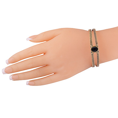 Home | Fashion Bangles | Brass Gemstone Bangles | Stunning Oxidised Texture Around Black Onyx Oval Shape Solid Brass Bangles