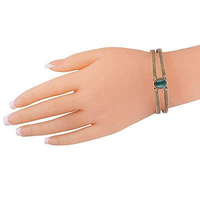 Home | Fashion Bangles | Brass Gemstone Bangles | Stunning Oxidised Texture Around Malachite Oval Shape Solid Brass Bangles