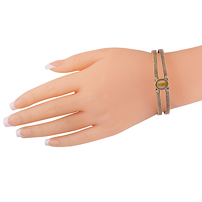 Home | Fashion Bangles | Brass Gemstone Bangles | Stunning Oxidised Texture Around Tiger's Eye Oval Shape Solid Brass Bangles