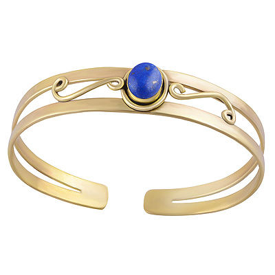 Home | Fashion Bangles | Brass Gemstone Bangles | Beautiful Wire Work Around Lapis Oval Shape Solid Brass Bangles
