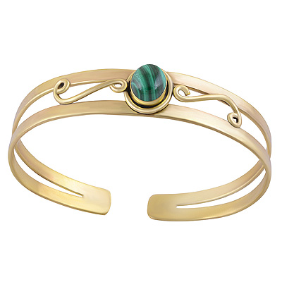 Home | Fashion Bangles | Brass Gemstone Bangles | Beautiful Wire Work Around Malachite Oval Shape Solid Brass Bangles