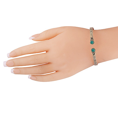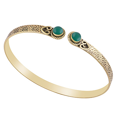 Home | Fashion Bangles | Brass Gemstone Bangles | Gorgeous Twisted Wire Work And Texture Around Green Onyx Round Shape Solid Brass Bangle