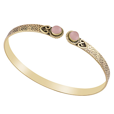 Home | Fashion Bangles | Brass Gemstone Bangles | Gorgeous Twisted Wire Work And Texture Around Rose Quartz Round Shape Solid Brass Bangle