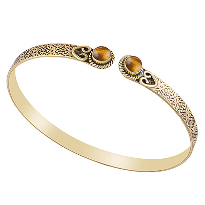 Home | Fashion Bangles | Brass Gemstone Bangles | Gorgeous Twisted Wire Work And Texture Around Tiger's Eye Round Shape Solid Brass Bangle