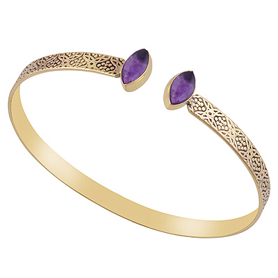 Home | Fashion Bangles | Brass Gemstone Bangles | Stunning Oxidised Pattern Around Amethyst Marquise Shape Solid Brass Bangle