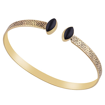 Home | Fashion Bangles | Brass Gemstone Bangles | Stunning Oxidised Pattern Around Black Onyx Marquise Shape Solid Brass Bangle