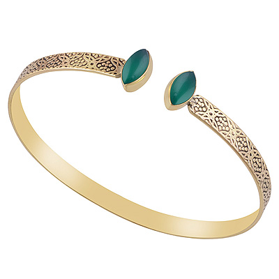 Home | Fashion Bangles | Brass Gemstone Bangles | Stunning Oxidised Pattern Around Green Onyx Marquise Shape Solid Brass Bangle