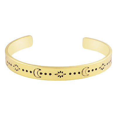 Home | Fashion Bangles | Brass Plain Bangles | Gorgeous Engraved Moon And Stars Design Plain Solid Brass Bangle
