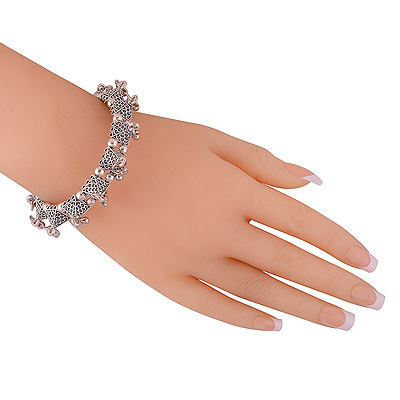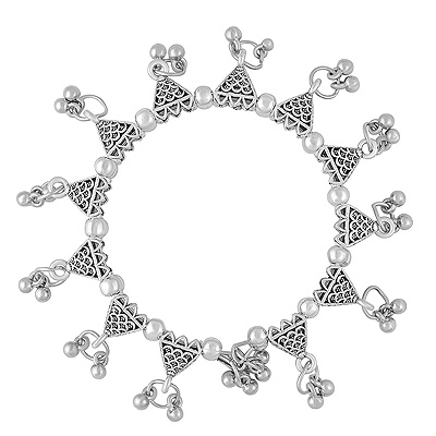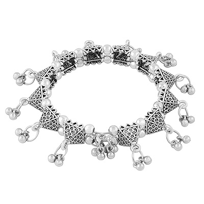 Home | Fashion Bangles | German Silver Plain Bangles | Alluring Pattern Ghungroo Hanging Around Plain German Silver Bangles