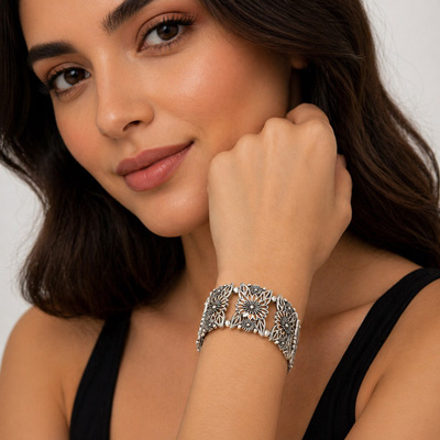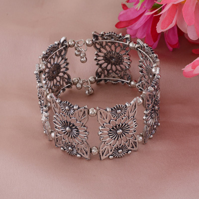 Home | Fashion Bangles | German Silver Plain Bangles | Classic Vintage Flower Cuff Plain German Silver Bangle