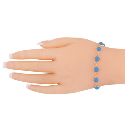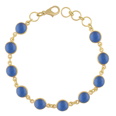 Alluring Handcrafted Bezel with Multiple Gemstones Blue Chalcedony Round Shape Solid Brass Bracelet