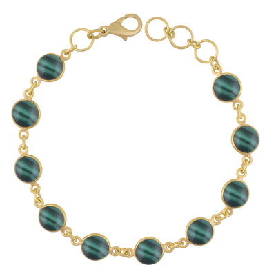 Alluring Handcrafted Bezel with Multiple Gemstones Malachite Round Shape Solid Brass Bracelet
