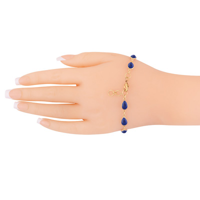 Beautifully Handcrafted Bezel with Multiple Gemstones Lapis Pear Shape Solid Brass Bracelet
