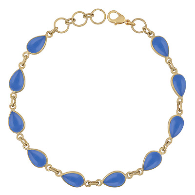 Beautifully Handcrafted Bezel with Multiple Gemstones Blue Chalcedony Pear Shape Solid Brass Bracelet
