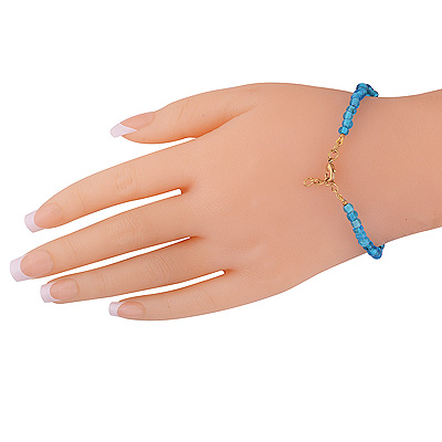 Alluring Gemstone Beads Blue Crystal Round Shape Solid Brass Bracelet