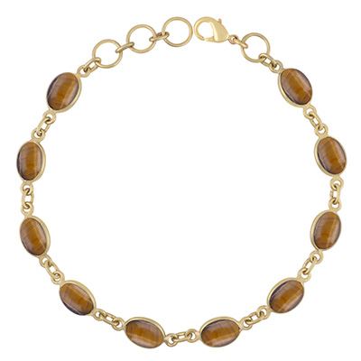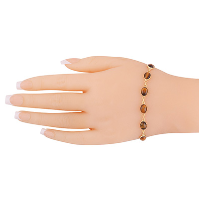 Gorgeous Handcrafted Bezel with Multiple Gemstones Tiger's Eye Oval Shape Solid Brass Bracelet