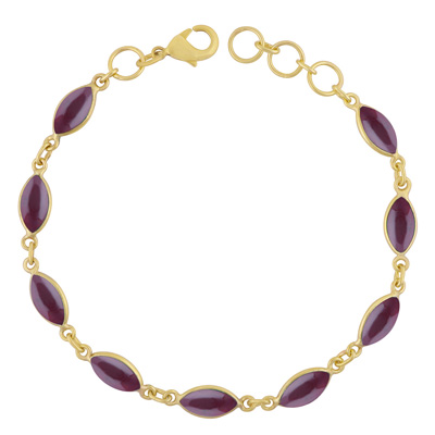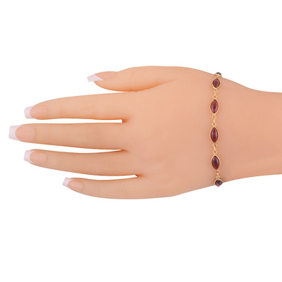 Beautifully Handcrafted Bezel with Nine Gemstones Garnet Marquise Shape Solid Brass Bracelet